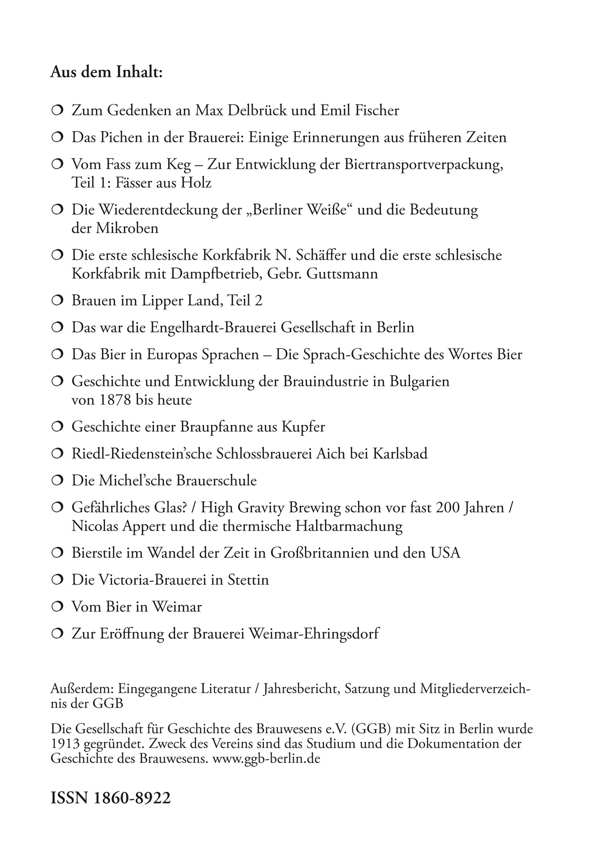 Herausgegeben von der Gesellschaft für Geschichte des Brauwesens Berlin (GGB) e.V.